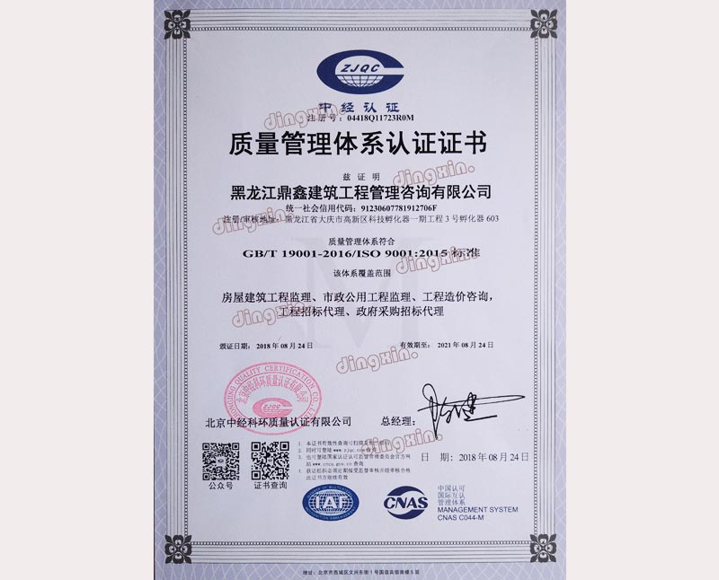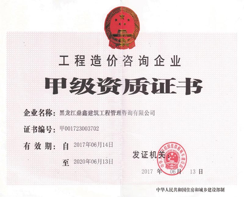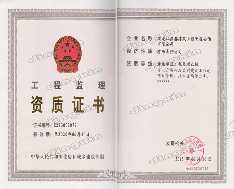 黑龍江鼎鑫建筑工程管理咨詢有限公司成立于2005年,注冊資金400萬元。具備中華人民共和國住房和城鄉(xiāng)建設部批準的工程招標代理機構(gòu)資格、中華人民共和國財政部批準的政府采購招標代理機構(gòu)資格、黑龍江省商務廳批準的機電產(chǎn)品國際招標代理機構(gòu)資格、中華人民共和國住房和城鄉(xiāng)建設部批準的工程造價咨詢甲級資質(zhì)、黑龍江省住房和城鄉(xiāng)建設廳批準的房屋建筑工程監(jiān)理乙級(市政公用工程監(jiān)理乙級資質(zhì))。主要從事建設工程及政府采購招標、造價咨詢、工程監(jiān)理、項目管理等業(yè)務。